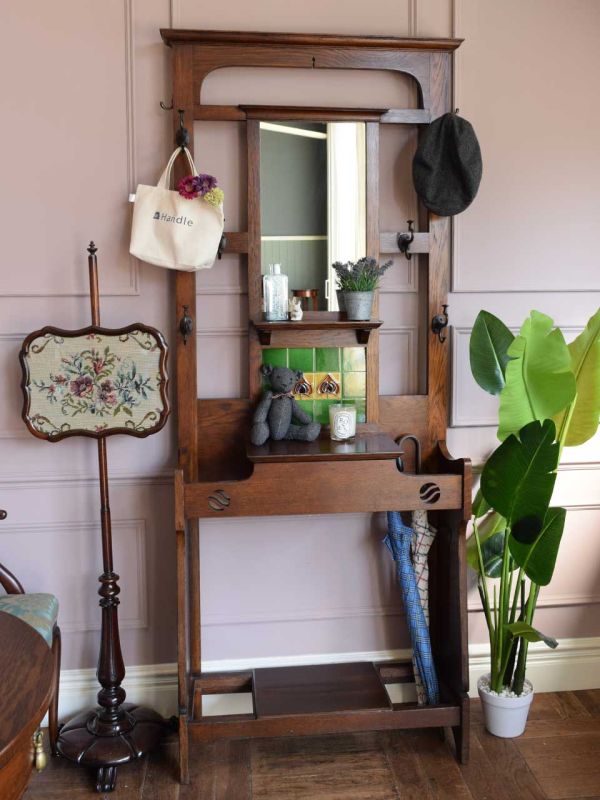 アールデコスタイルのプランツスタンドを置いた玄関ホール