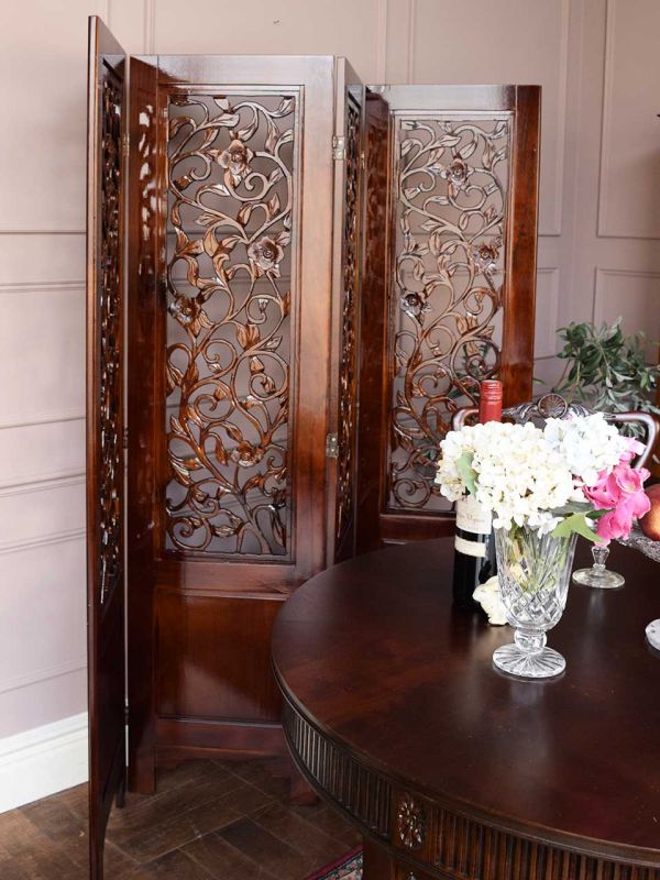 実は…昨日、名古屋からお越しいただいたOさまのところにお嫁入りが決まった、めずらしく大きなサイズのマホガニーの円卓。 アンティーク調のパーテーションと組み合わせて、シノワズリスタイルのダイニングをコーディネートしたら、めっちゃくちゃステキ☆ マホガニーの色に合わせて、赤いトライバルラグを敷いてみたら、華やかさがプラスされて、さらにいい感じ~!お嫁に行ってから、大切にしてもらえそうだな…と私も満足気分で贈りだします。