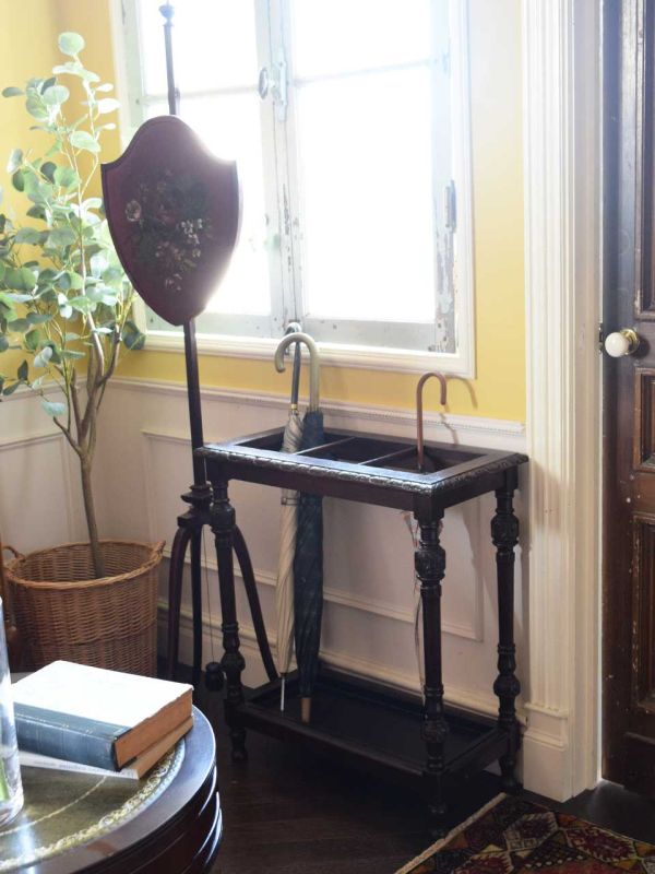 英国紳士のおしゃれアイテムを置く、ステッキスタンドを傘立てにした玄関