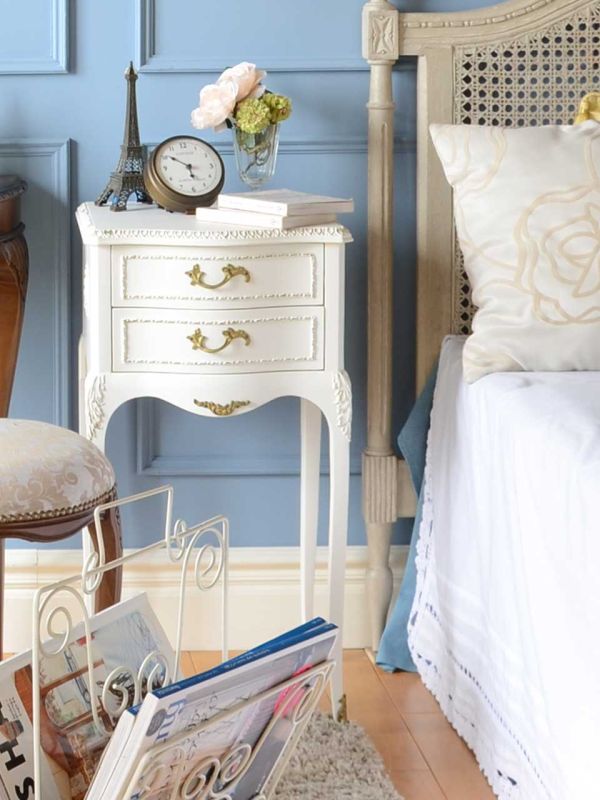 白いカシャーンが爽やかな、フレンチスタイルの寝室