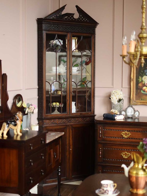 大きなワードローブを食器棚に使う、英国スタイルのダイニング