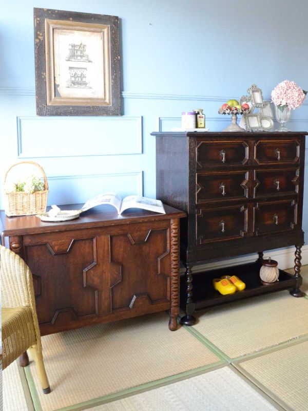 早朝散歩で疲れた体をオーク材の家具と休める、お昼寝を楽しむ和室