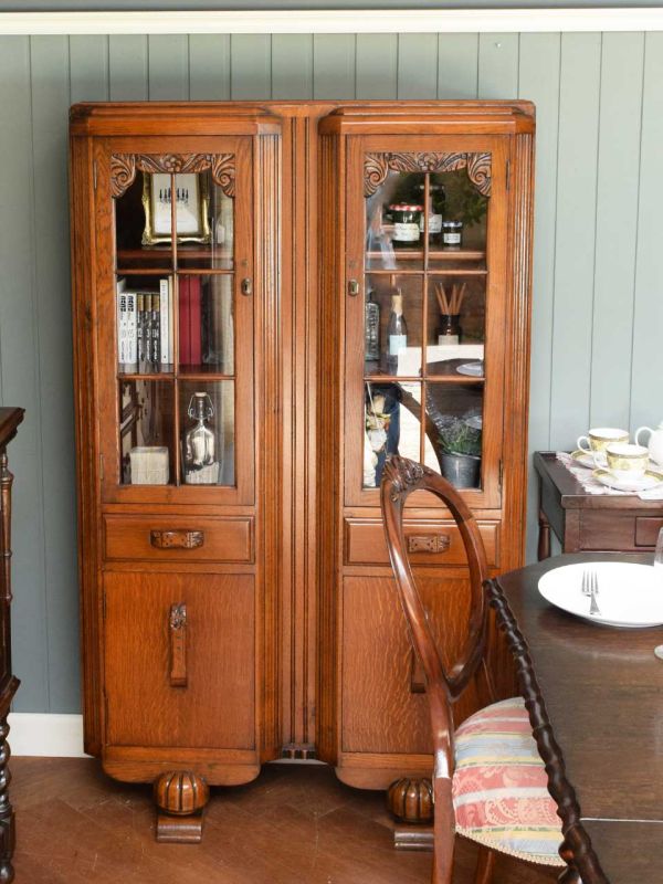 大きなワードローブを食器棚に使う、英国スタイルのダイニング