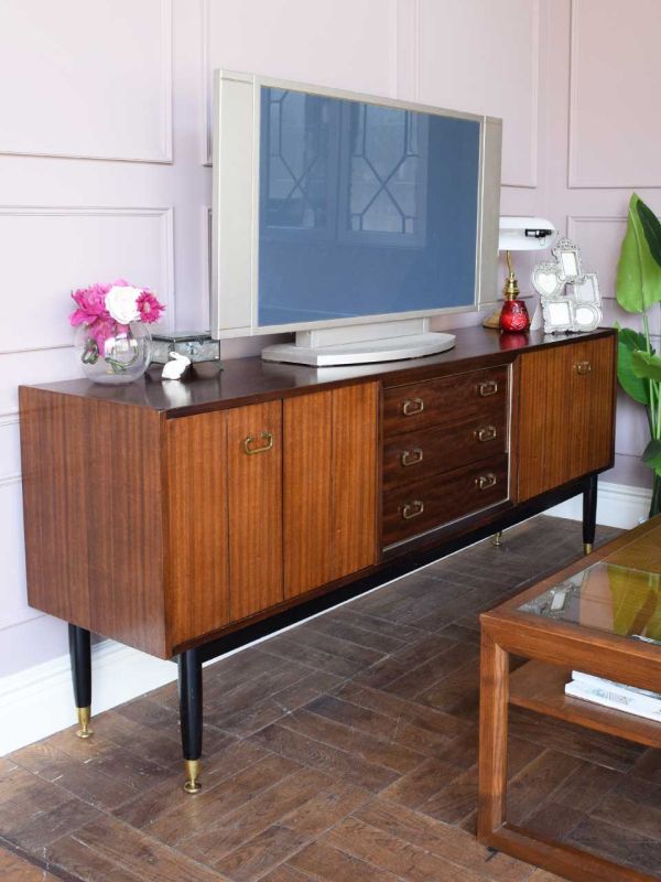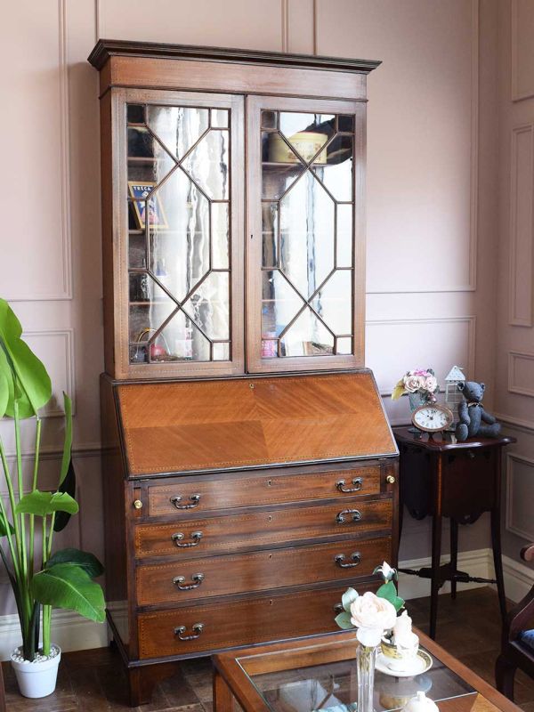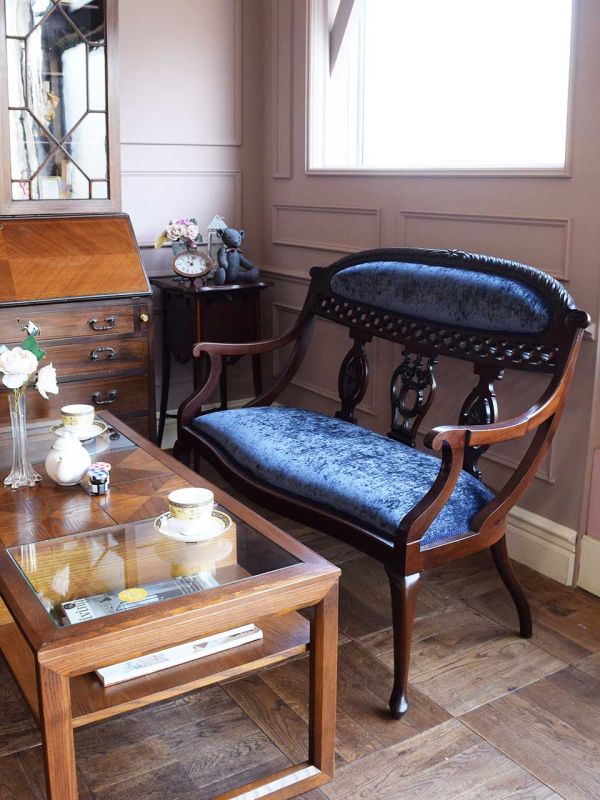 杢目って本当に面白いな・・・と思いながら、杢目の違いでデザインにしたビューローブックケースとビンテージボードを使ってリビングをコーディネートしてみました。 まるで30年ほど時代を先取りしているような、カッコいいシノワズリのライティングビューロー。遠くから見た方が杢目の違いがよく分かるな・・・と思いながら、G-PLANのサイドボードも一緒に。 セティとローテーブルを置いて、クラシックタイプのアンティークと、ビンテージを半分半分に組み合わせた超カッコいいリビング。男前に仕上がって大満足デス。