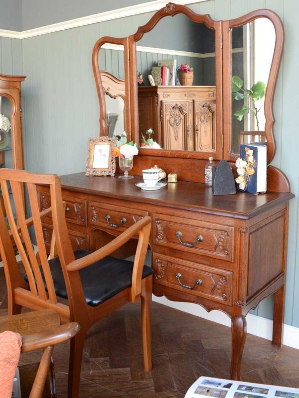 やっぱり三面鏡って、なんだかんだ言って超便利!大きな鏡の前で身だしなみをチェックするだけで、ちゃんとしなくちゃって気分になってくるから、鏡を見ることって大事だな・・・って。