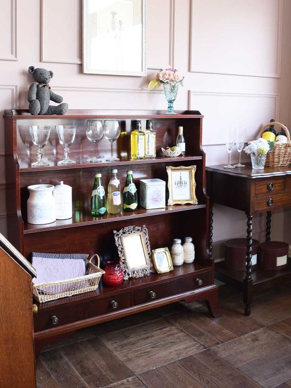 大きなワードローブを食器棚に使う、英国スタイルのダイニング