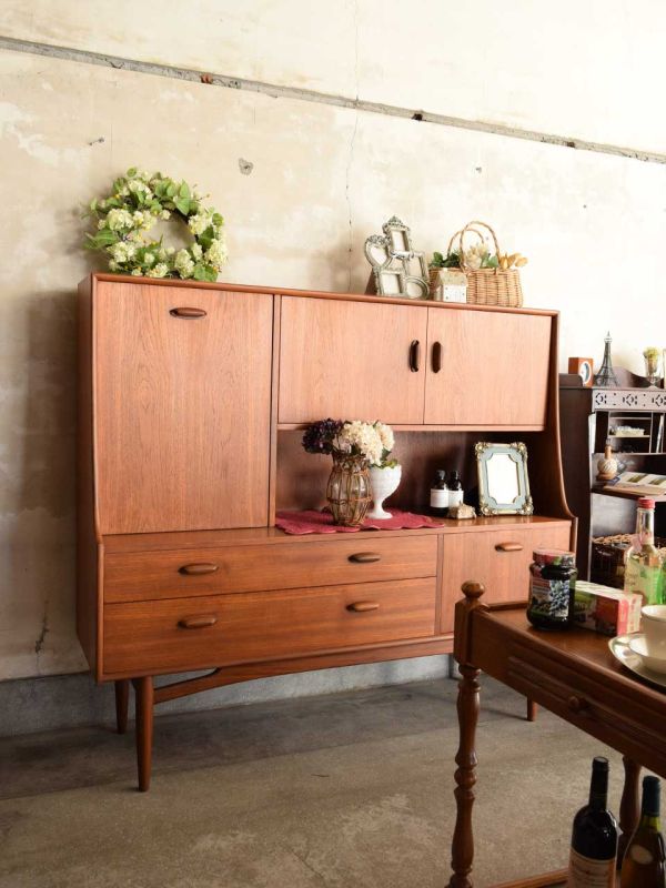 大きなワードローブを食器棚に使う、英国スタイルのダイニング