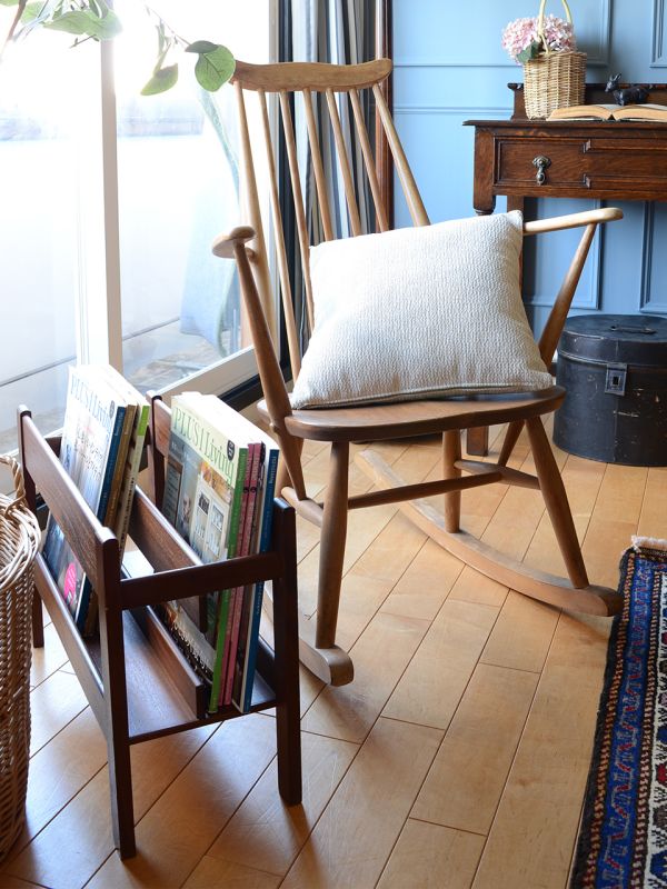 ティルトトップテーブルを真ん中に置いて、ロッキングチェアとホイールバックチェアを設置。今日から新生活のスタート☆心機一転、ガンバロウ~!