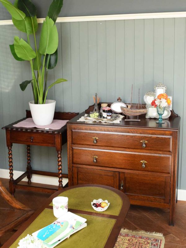 今日の気分は英国。カッコいいウェルシュドレッサーを真ん中にドーンと置いて、チェストとコンソールを壁面に。ゆらゆらとロッキングチェアに揺られながら、新しく購入したマウスピースとリードをセッティングしてみました。