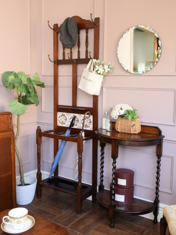 玄関入ってすぐの正面には、存在感があり過ぎる大きなサイドボードを設置。傘立てとコンソールを置いて、椅子とローテーブルを組み合わせたお喋りが出来るコーナーを作ってみました。