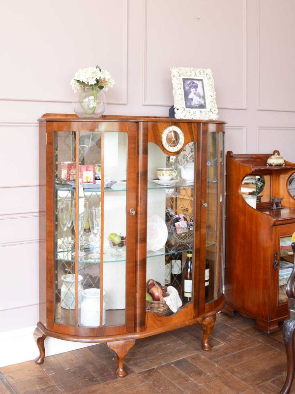 出かける前の時間を確認する、時計がついたガラスのキャビネットを主役にして、お隣にはミュージックキャビネットを。アクセントにG-PLANのビンテージドレッサーを置いてみました。