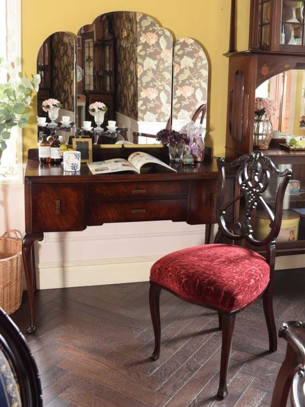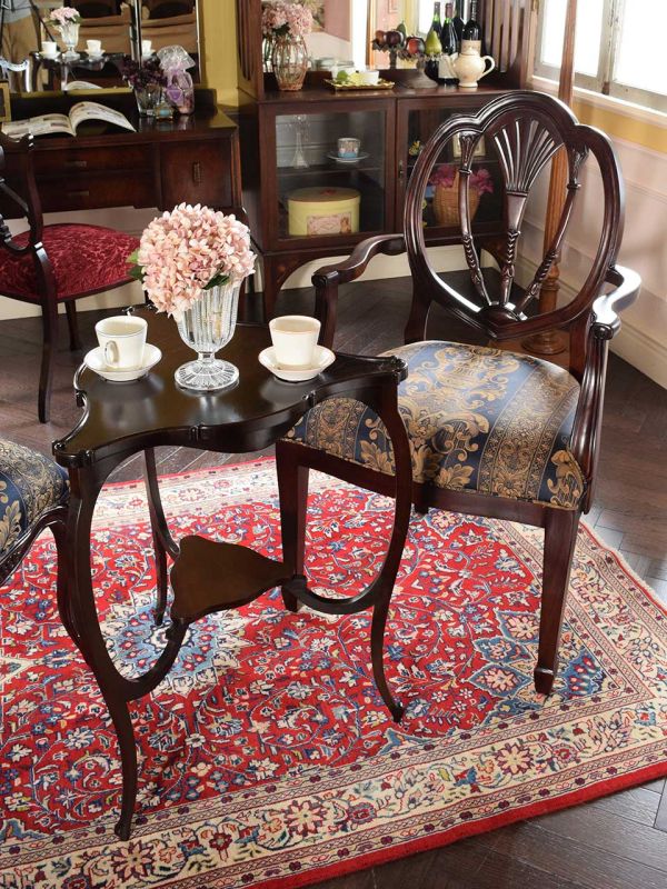 昨日から分刻みのスケジュールで大忙しだった私。今日でやっと少し落ち着くので、ホッとしながらお茶するお部屋をコーディネートしてみました。 エドワーディアンのパーラーキャビネットとドレッサーを並べた、鏡がキラキラ輝くクラシックスタイルのお部屋にいるだけで、心がゆったりする~(笑) 美しいオケージョナルテーブルを置いて、アンティーク調の椅子で囲んだお部屋で、ゆっくりお茶を飲んだ後、いつものペースで仕事しようと思います。