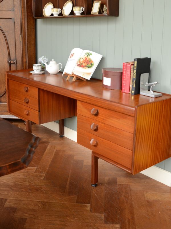 昨日の夜、久しぶりに長男からの電話。仕事のいろんな話をして過ごした後、一人暮らしの男子にはこんな部屋がいいんじゃないかな?と思ってコーディネートしてみました。 なんだかんだ言って、ソファよりもよく使うと言っている伸長式のダイニングテーブルを中心に、お気に入りのワードローブを一番目立つお部屋の角に設置。 デスク兼サイドボード代わりに使う北欧スタイルのビンテージと英国らしいアンティーク家具とのコラボが超カッコいい!まだまだ半人前だけど、いろんなことを学んでいる社会人2年生に負けないよう、私もガンバリマス!