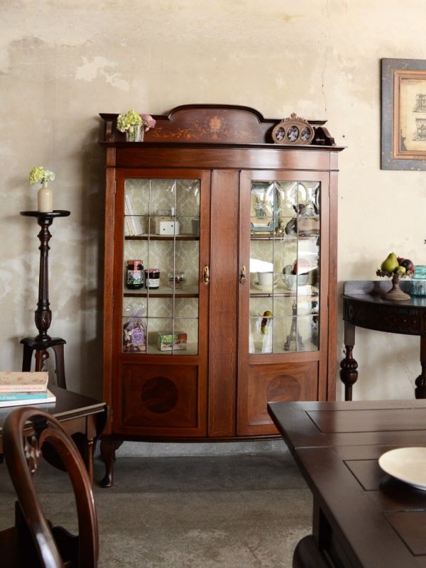 大きなワードローブを食器棚に使う、英国スタイルのダイニング