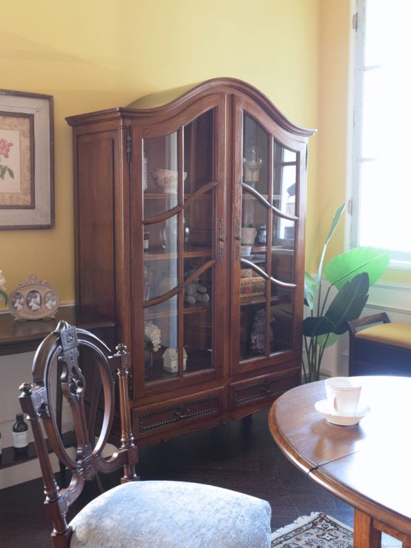 大きなワードローブを食器棚に使う、英国スタイルのダイニング