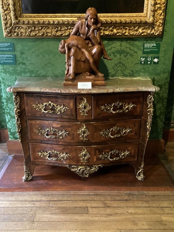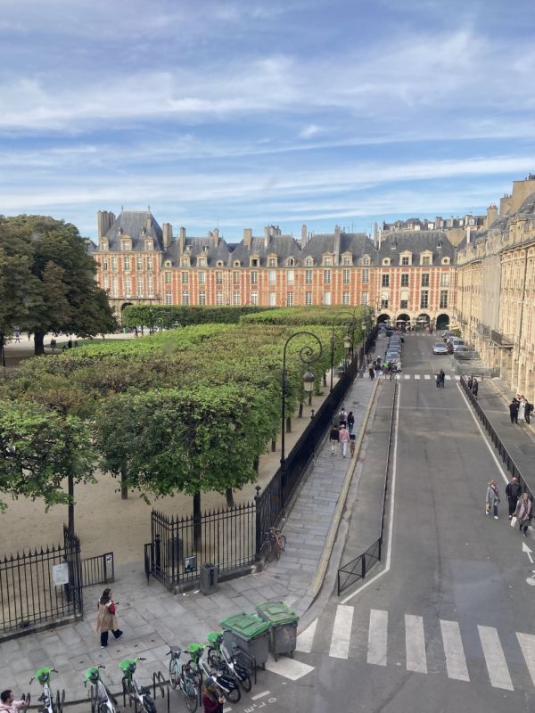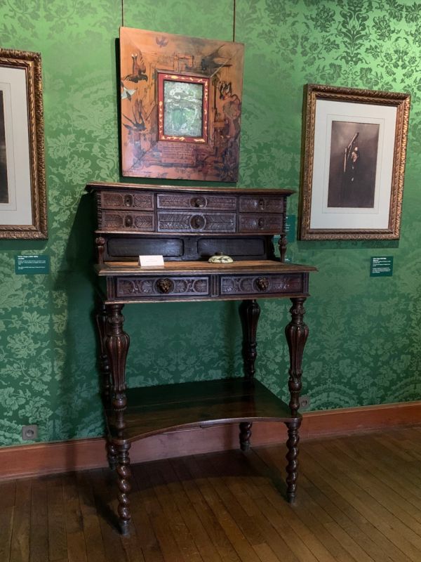 最後はユーゴーの寝室と書斎。1870年亡命先からフランスに帰国したユーゴーが晩年を過ごした、エロー通りの館の寝室を忠実に再現しています。 ユーゴーがデザインした家具がたくさん並んでいる中で、特に興味深いのが、立ったまま執筆するためのデスク!まさに今、立ったままデスクに向かう私と同じ感じです(笑) 1885年に自宅で息を引き取ったユーゴーの葬儀は国葬。200万人もの人が参列したくらい、フランスの人にとって大切な存在だったんだな…と。窓から見えるヴォ―ジュ広場は、ユーゴーがいた時代とそんなに変わらないとのこと。なんだか歴史を感じてしまう素敵な場所でした。