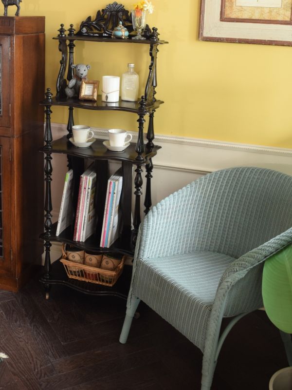 大きなワードローブを食器棚に使う、英国スタイルのダイニング