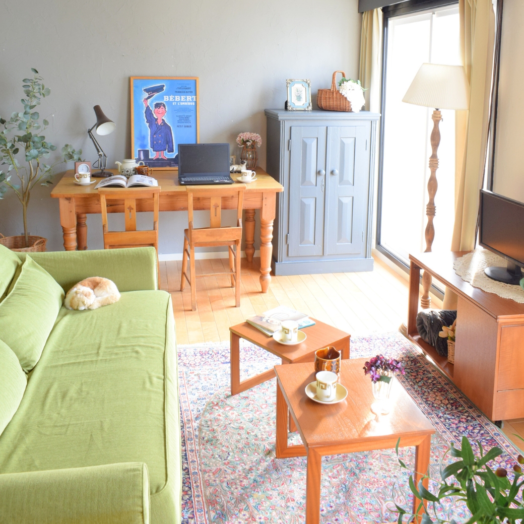 のんびり一人の時間を楽しむ、春色ペイント家具と暮らすリビング