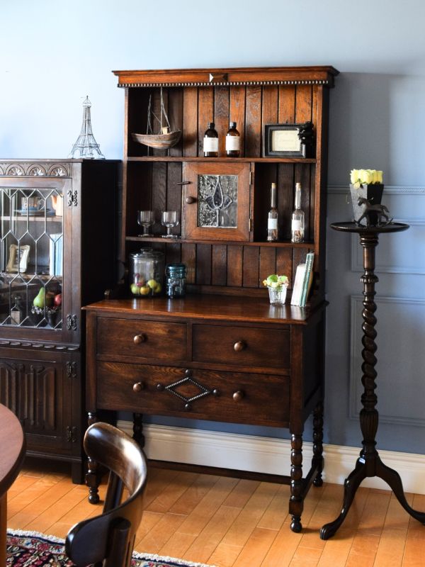 楽しかった三連休が終わってしまう…(涙)すっごくお天気が良くて気持ちいい日が続いて最高の連休だったなと思いながら、最終日の夜ご飯を食べるダイニングを作ってみました。 ステンドグラスの入ったウェルシュドレッサーと、同じチョコレート色のガラスキャビネットを並べて、丸いビンテージテーブルをベントウッドチェアで囲んだ今日のダイニング。 たくさんの思い出が出来て、また明日から頑張れそうです。