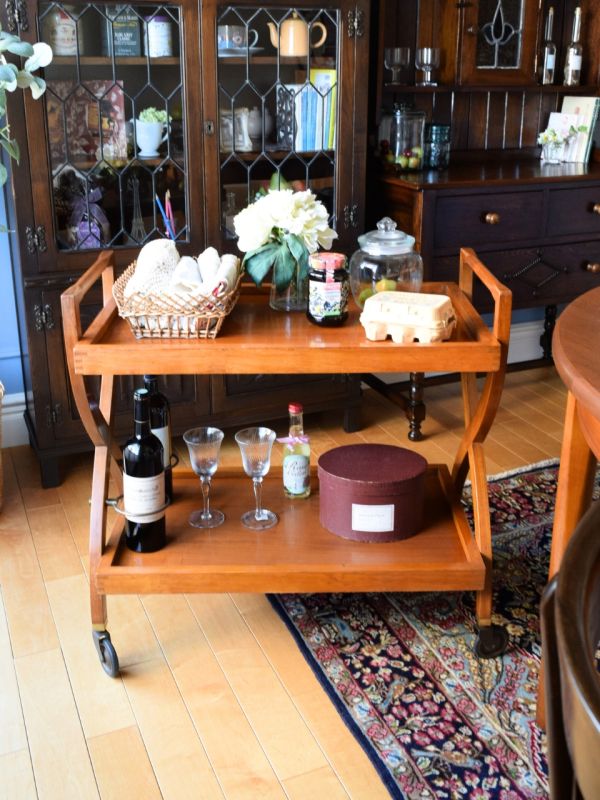 大きなワードローブを食器棚に使う、英国スタイルのダイニング