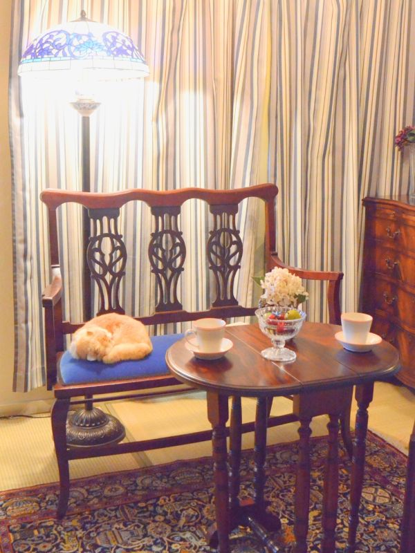 新人戦に末っ子を送り出した後、お茶を楽しむ寝室