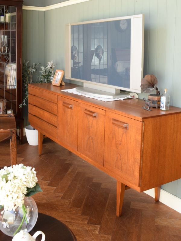 明日の朝、久しぶりにお花のお稽古がないので、今日は夜更かしして映画でも見たい気分だな・・・と大きなテレビボードを置いたリビングをコーディネートしてみました。 チーク材のビンテージボードの上に、大きなテレビをドーンと置いて、1人掛けのソファにドカッと座って映画鑑賞コーナーを。サイドテーブルに使うのは、天板が広がるワゴン! これがこれが、すっごく便利で使いやすい~!いろんなものを乗せてコロコロ移動させることが出来て、ズボラな私にピッタリ(笑)今晩はゆっくり一人時間を楽しんで、リフレッシュしようっと。
