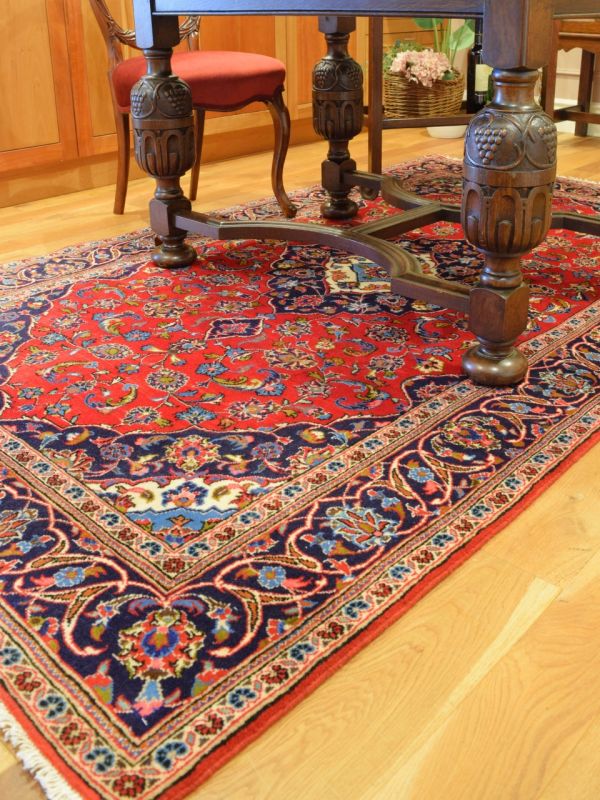 2~3日前から、ペルシャ絨毯の記事を作っている私。知れば知るほど、ドンドン気になって仕方がないペルシャ絨毯(笑)広げるだけでめっちゃ優雅な雰囲気になるので、今日は大きなサイズを広げて、ダイニングを作ってみました。 やっぱりペルシャ絨毯と言えば…赤☆とはいえ、青が好きな私は、私にとってちょうどいい配分で、赤と青がいい感じに混ざり合ったペルシャを選んで、主役のドローリーフテーブルの下に。 壁面には、わが家とお揃いのミラーバックサイドボードを置いて、シャンデリアの光がキラキラ反射するのを見ながら、至福の食事を楽しみます。