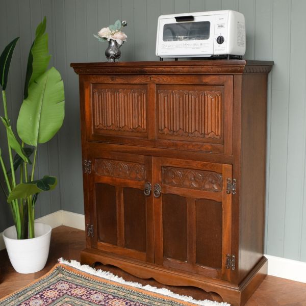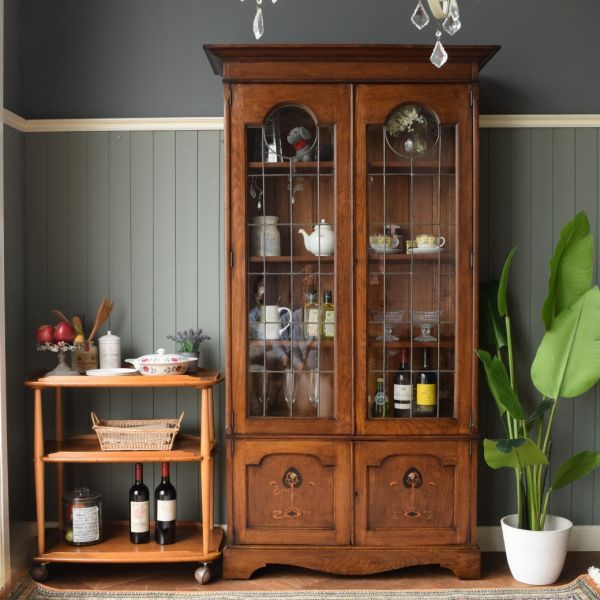 大きなワードローブを食器棚に使う、英国スタイルのダイニング