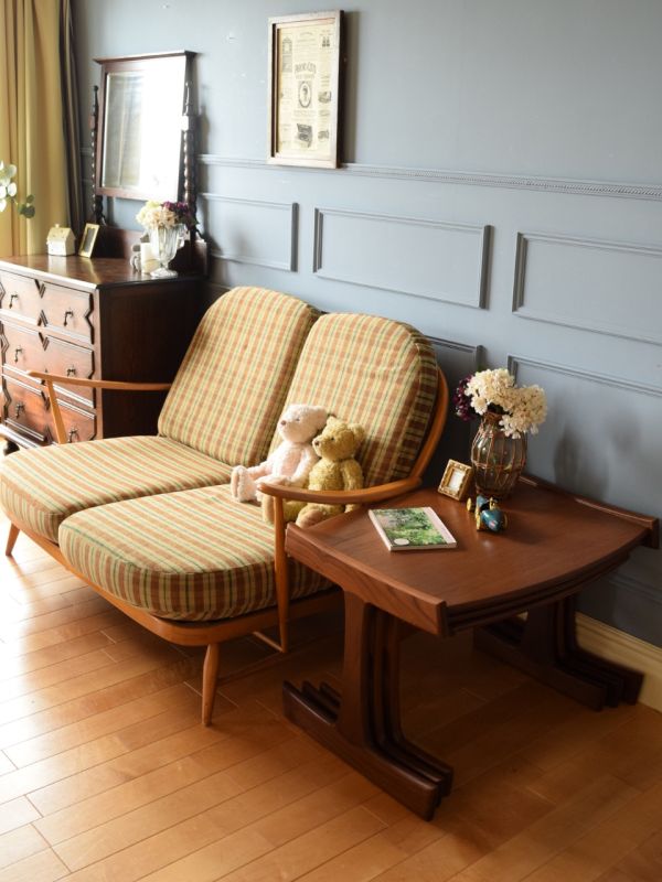 今朝も目を覚ますと外は真っ白!雪かきから始まった一日の疲れを癒すダイニングをコーディネートしてみました。 チョコレート色のアーコールのテーブルを真ん中にドーンと置いて、ゴールドスミスとスティックバックチェアを2脚ずつ組み合わせたビンテージスタイルのダイニング。脇にはチェック柄のソファを置いて、カッコいいネストテーブルを組合わせました。 雪の反射で明るくなった外の光を、さらにドレッサーの鏡に反射させて明るくなったお部屋で、今日の疲れを癒そうと思います。
