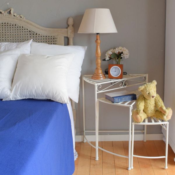 明日から全国大会に出場するため、岡山に向かった末っ子。最低2日間は帰ってこないので、一人で眠る寝室をコーディネートしてみました。 白をベースにした私好みの寝室には、ベッドと大きな本棚、そしてガーデン用のティーテーブル&チェアを置いて、お花見気分を演出。お揃いの花台をサイドテーブルにベッドの横にセッティングしました。 ベッドに一人でラクに眠れるけれど、やっぱりなんだか寂しいな・・・と思いながらあと2日。末っ子の帰りを待とうと思います。