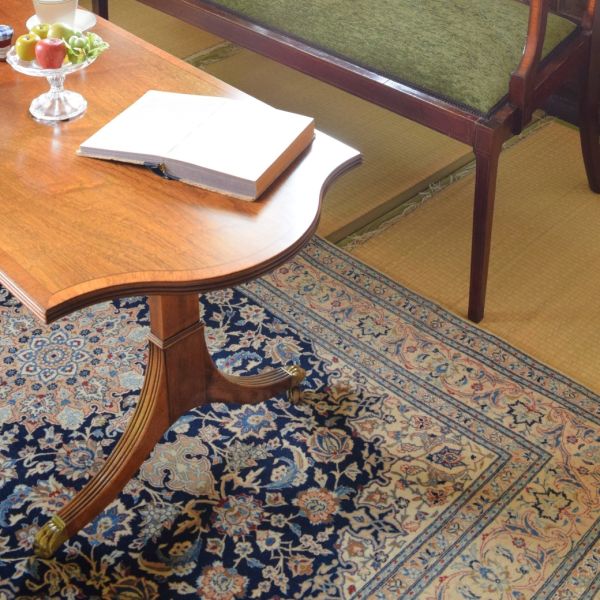 畳の上にペルシャ絨毯を広げた秋色の和室