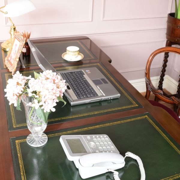 ゲートレッグテーブルに並んで2人で仕事をこなす英国スタイルの書斎