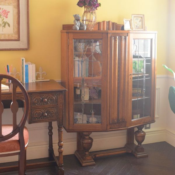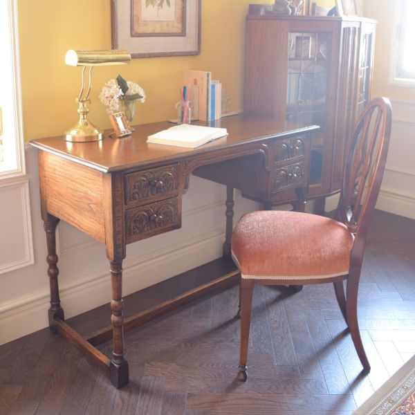 ドローリーフテーブルを大きく広げて仕事する書斎