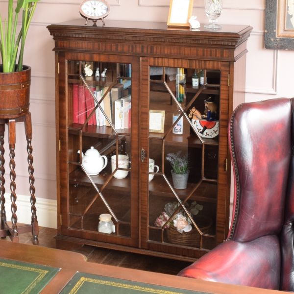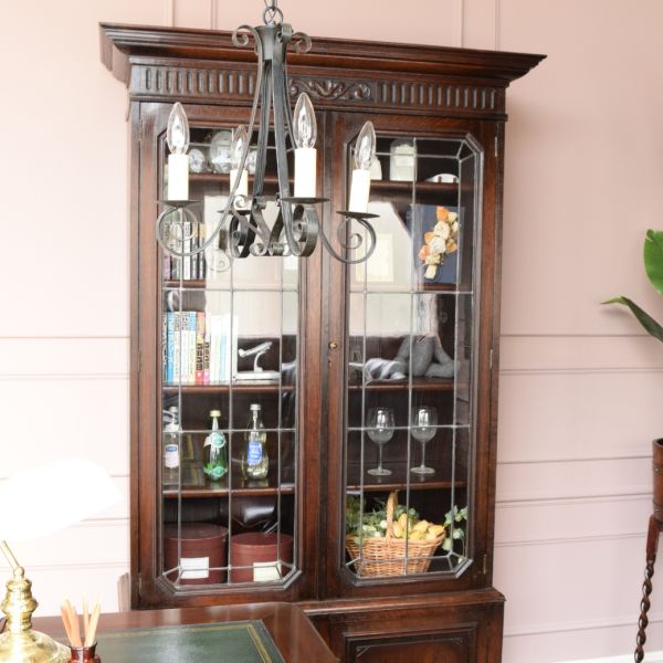 先週、放送されたテレビの反響がすごくて、ちょっと社長室らしいお部屋を作らないといけないかな?と思いながら、プレジデントデスクを使ったカッコいい社長室をコーディネートしてみました。 せっかくなので、とことんカッコよくしたい!と、英国アンティークらしいステンドグラス扉のブックケースとチェスターフィールドを組み合わせたら…超カッコいい~! あぁ…こんなにカッコいい社長室だったら、それだけで社長の格も上がるな…と思いながら、うちのお店ではムリだと判断しました(笑)