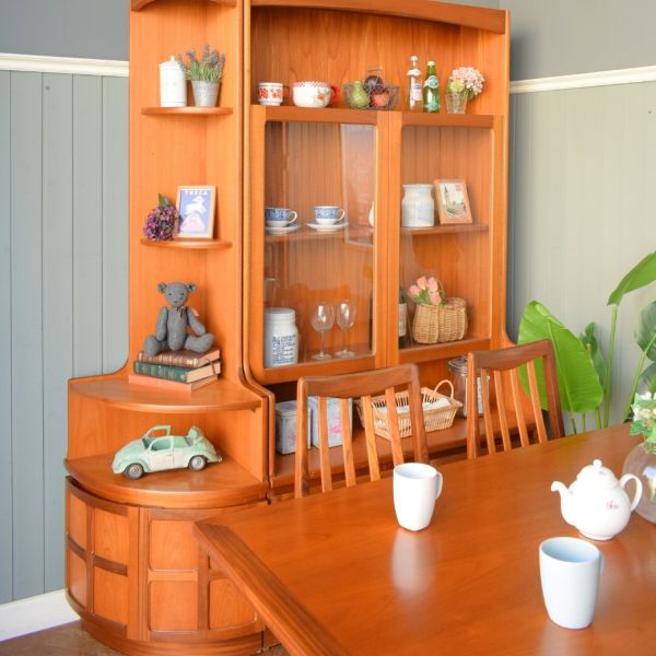 先日、ネイサン社の記事をまとめていたら、さらに好きになってきてしまった私(笑)そのままの気持ちで、ネイサン社らしいチークコレクションを使ったダイニングをコーディネートしました。 コーナー用の家具使いがミソ!なんとなくお部屋の隅に置かないといけないと思っていたんだけれど、こんな風に家具の隣に置くことで柔らかな雰囲気になるからビックリ。 ダイニングセットはG-PLAN。ネイサンとG-PLANのスペシャルコラボが超大好き☆