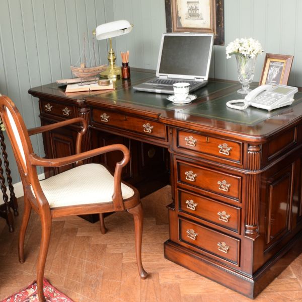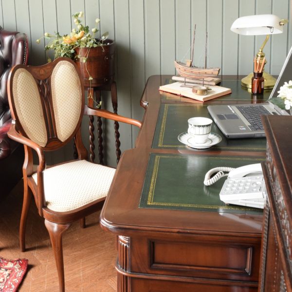 ゲートレッグテーブルに並んで2人で仕事をこなす英国スタイルの書斎