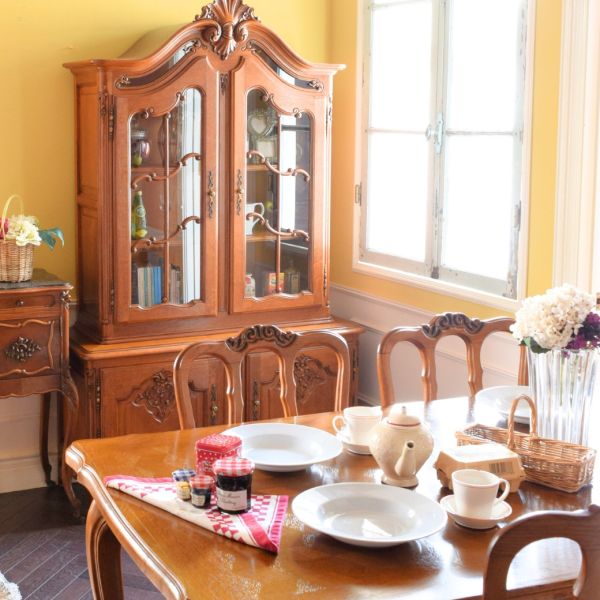 朝散歩を終えて朝ごはんを食べるフレンチスタイルのダイニング