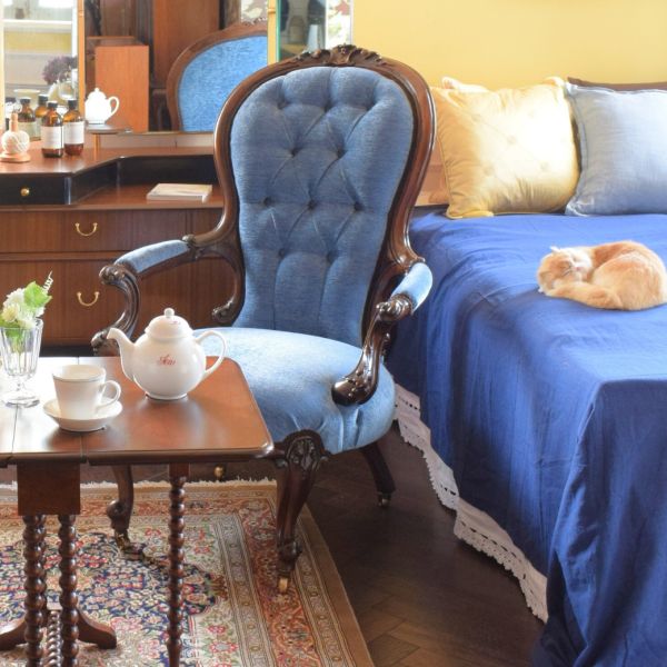 お弁当を作ってホッと一息つく英国アンティークの個室