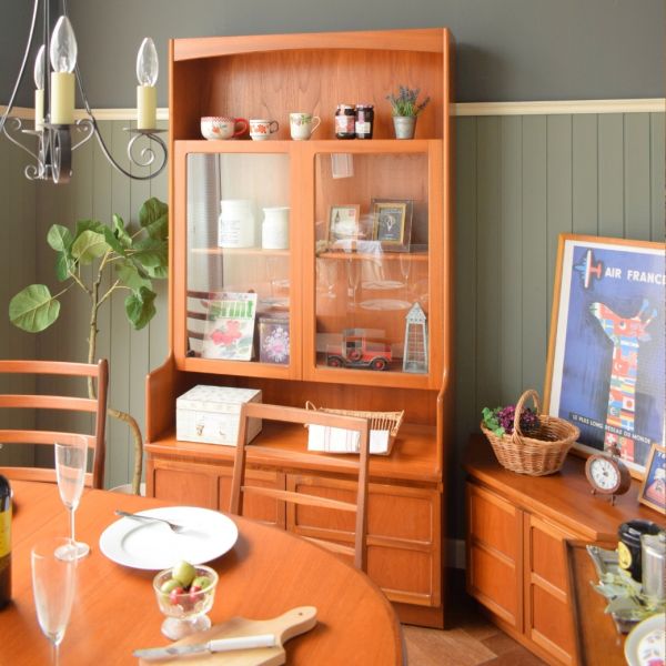 今朝は大雨。ずぶ濡れになりながら、クーラーの入れ替えをしてくれている職人さんのおかげで、快適になった北欧スタイルのダイニングをコーディネートしてみました。 大好きなネイサン社のガラスキャビネットとサイドボードを並べて、これまた大好きなG-PLANのホエールレッグテーブルを設置。スッキリとカッコいいダイニングチェアと組み合わせました。 エアコンが新しくなったからなのか、北欧スタイルのデザインだからなのか超スッキリ~!気持ちよくご飯が食べれそうです。