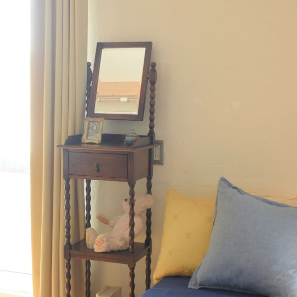毎朝、髪型をチェックできる、シェービングドレッサーのある寝室