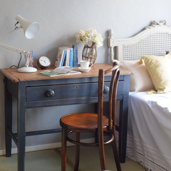 わが家にあるデスクとよく似たペイントのデスクが到着したので、嬉しくなって寝室を作ってみました。 せっかくなので、あまり見ない感じのお部屋にしたいな・・・と、畳とコラボさせた和室コーデ。ベントウッドチェアと丸いローテーブルを組み合わせて、ペイントの家具と畳が似合うようにしてみました。 これがこれが、すっごくいい感じ~!全体が上手くまとまった和室が出来上がって、大満足です。