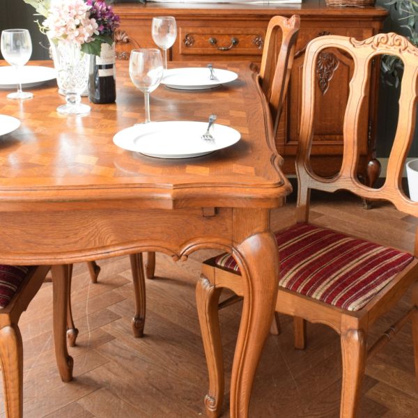 ブルーグレー色をアクセントカラーに入れたフレンチ食卓