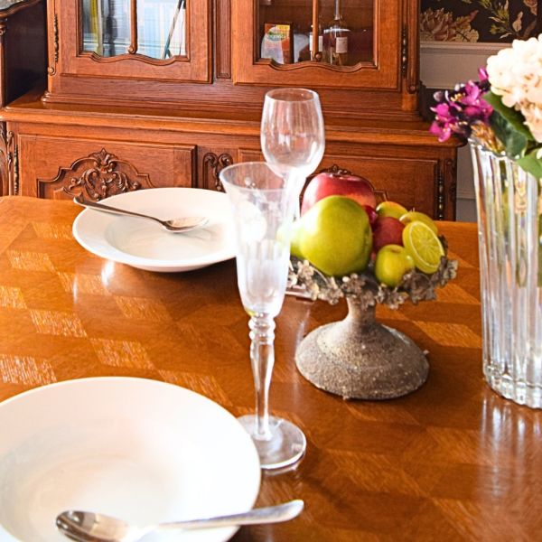 朝散歩を終えて朝ごはんを食べるフレンチスタイルのダイニング