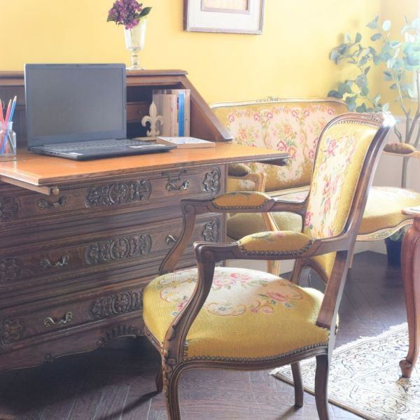 最近、朝散歩をしてお腹を空かせてから朝ごはんを食べるのが日課。今日はいつもよりさらに早く目が覚めてしまったので、早めにご飯を食べるダイニングをコーディネートしてみました。 気分は・・・フレンチ!フランスのアンティーク家具でトータルコーディネートしたリビングダイニングで過ごす時間・・・最高☆ サロンセットの横にライティングビューローを置くと、仕事が出来て何かと便利! 朝ごはんもモリモリ食べて、英国便の入荷を手伝って、筋トレに行って、ゴルフの打ちっ放しに行って・・・クタクタになって眠ります。
