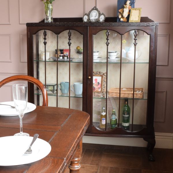 大きなワードローブを食器棚に使う、英国スタイルのダイニング