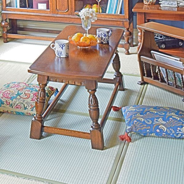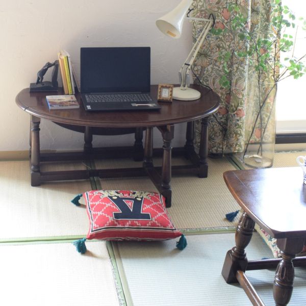 コタツ代わりに大きな円卓を置いた英国スタイルの和室