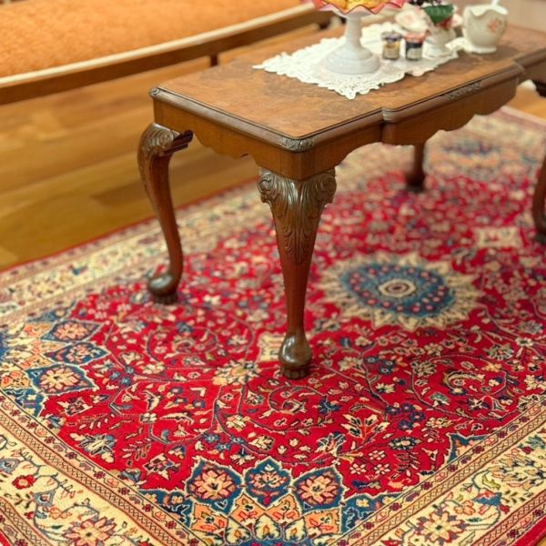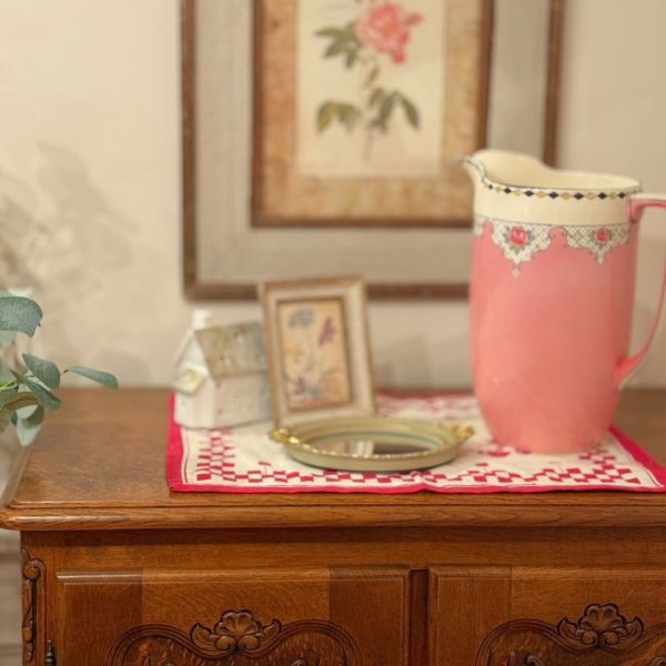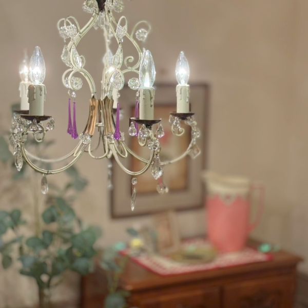 セティの横に、サイドテーブルの機能を兼ね備えたフロアスタンドをセッティング。2つの機能を一つにした画期的すぎるアンティークに感動(笑)