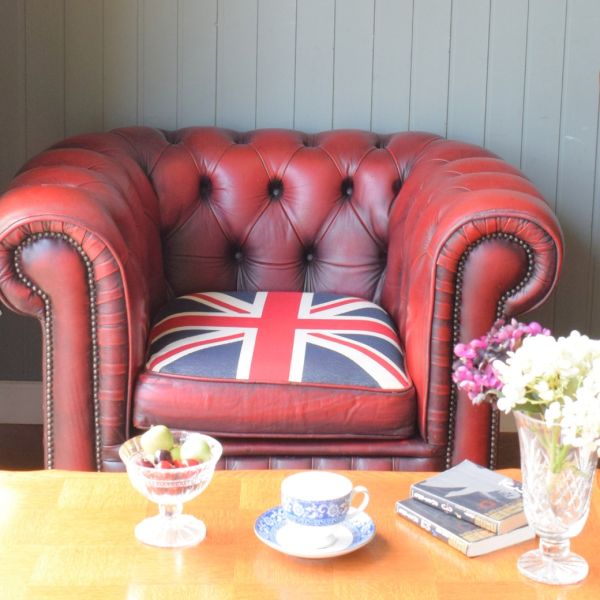 今日はフランスのプレジデントデスクを使って、エレガントスタイルの書斎を作ってみました・・・が!なんとなく物足りなくなってしまって、選んだのがチェスターフィールドの一人掛けソファ☆ 相反するスタイルの家具を一緒に組み合わせたら、エレガントさにカッコよさが加わって、超いい感じ~(笑) 座面のユニオンジャックに合わせて、バルケシルのトライバルラグを組合わせたら、お揃いのような雰囲気になって完璧!こんな組み合わせもいいな・・・