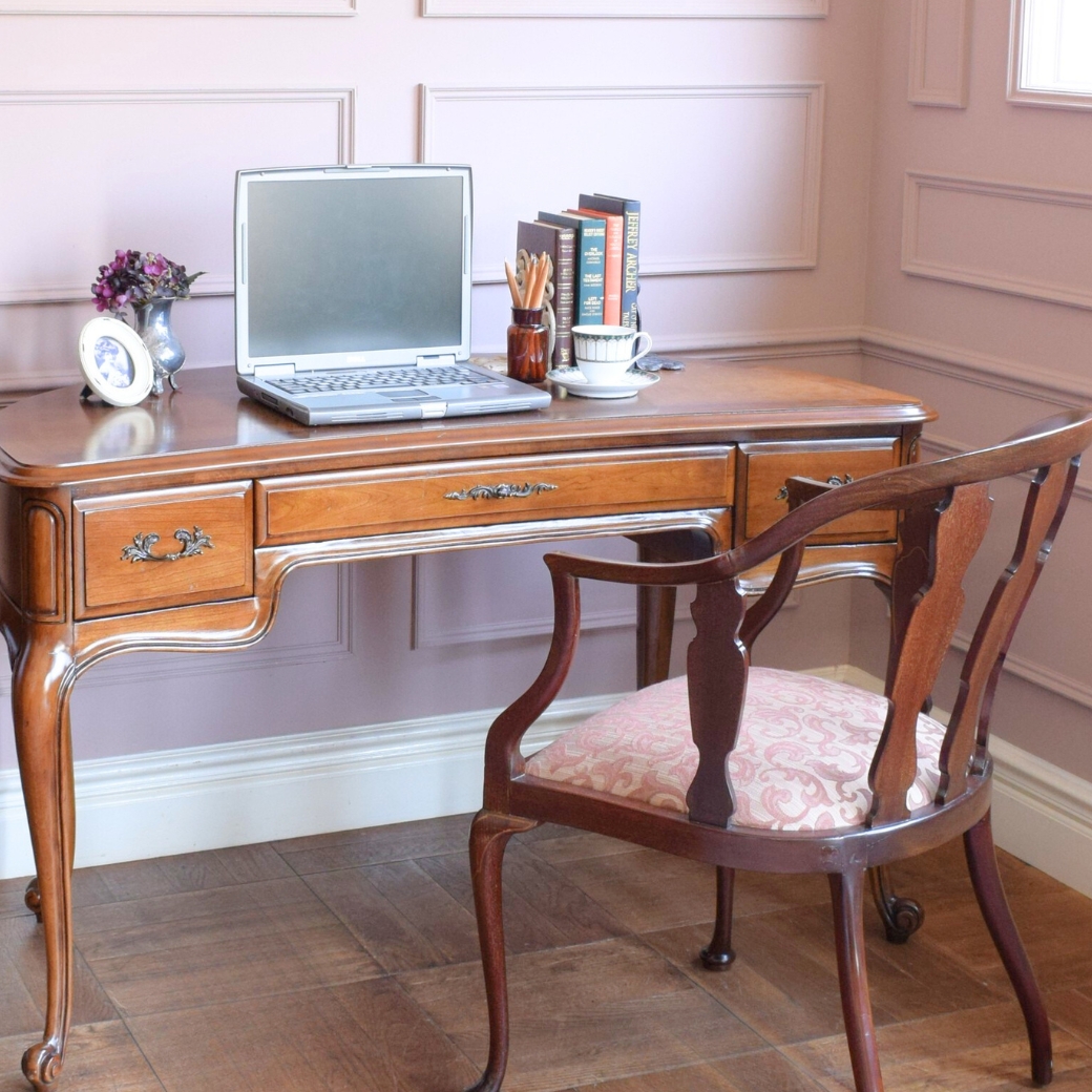 ドローリーフテーブルを大きく広げて仕事する書斎