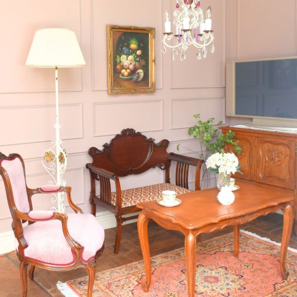 優雅な雰囲気で吹けたらいいな・・・と思って、フレンチスタイルのお部屋をコーディネート。ピンク色のフレンチカブリオールレッグのアームチェアに座れば、気分も上がる~(笑)